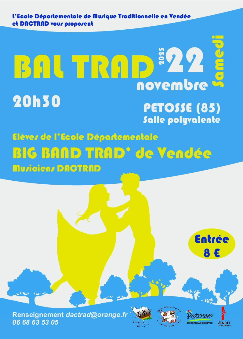 La soirée sera animée par le Big Band Trad’ de Vendée ainsi que les musiciens de Dactrad.